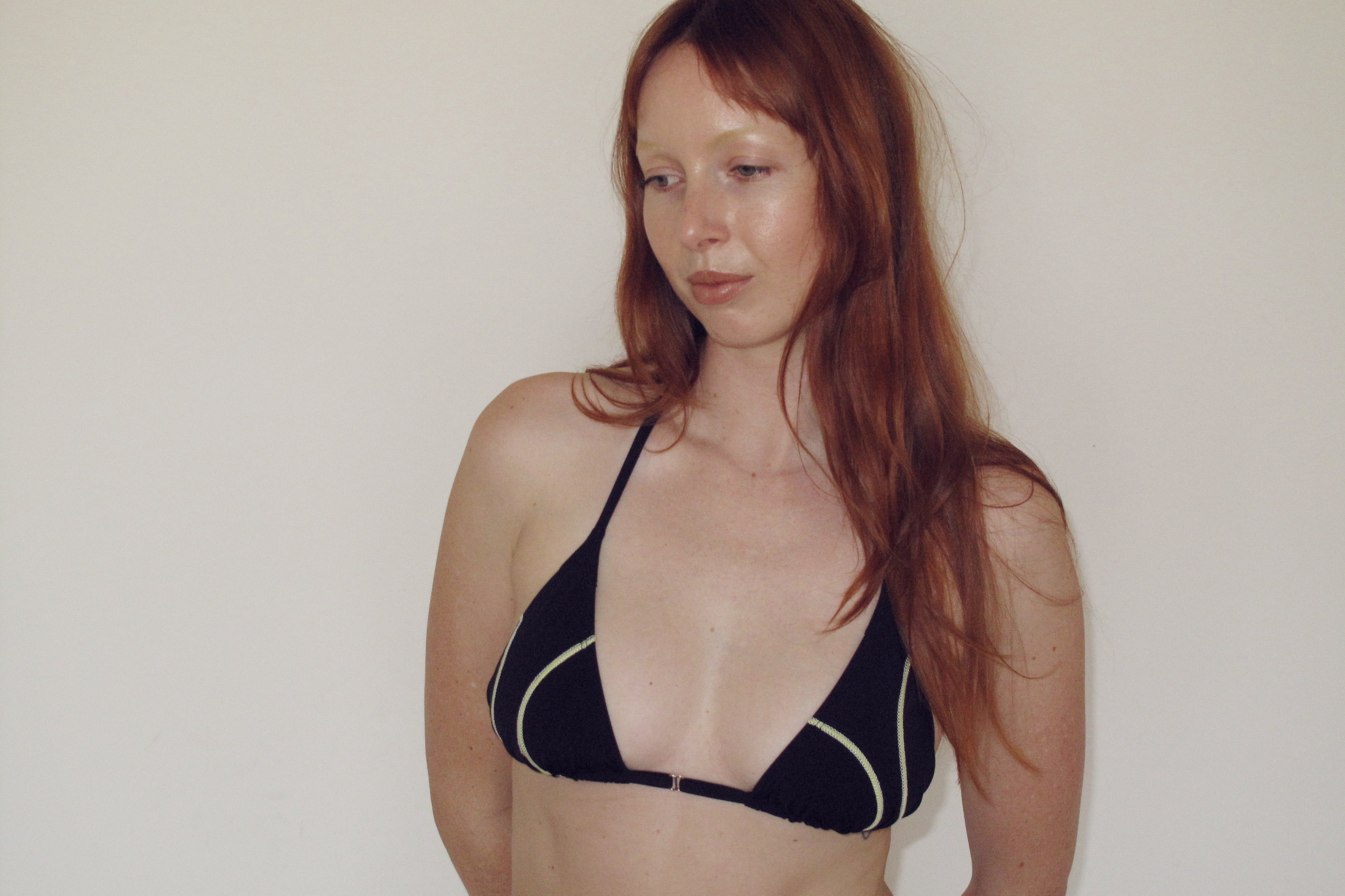 The Victor Top is a refined halter triangle top with a mini hardware detail at the centre front. Features a sleek adjustable back closure allowing the top to be comfortably layered with an overgarment.