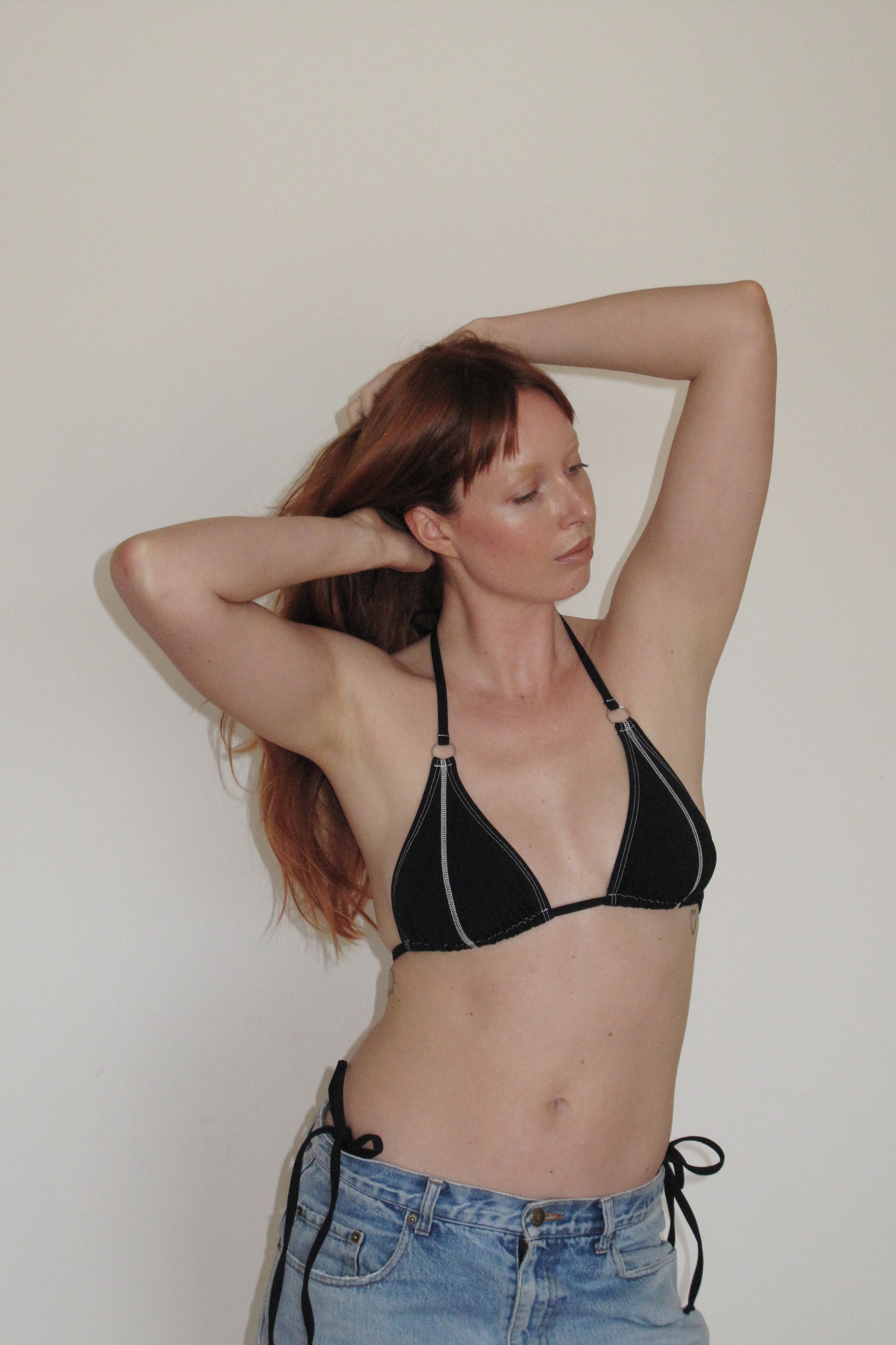 The Rift Top is a classic halter triangle top with a linear stitch detail down the centre.
