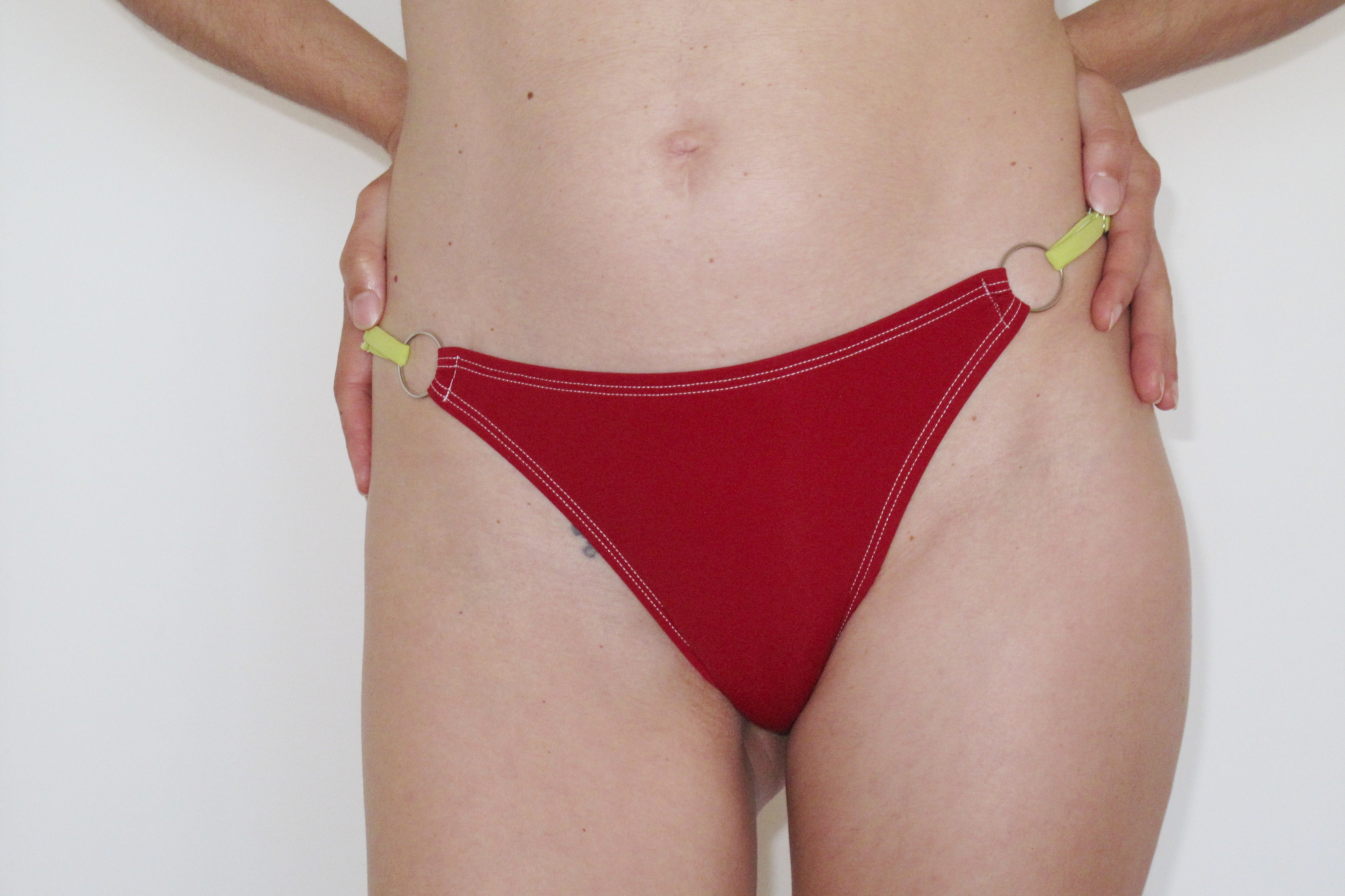 The Sonic Brief is a low rise style with circular hardware detail and adjustable waist.